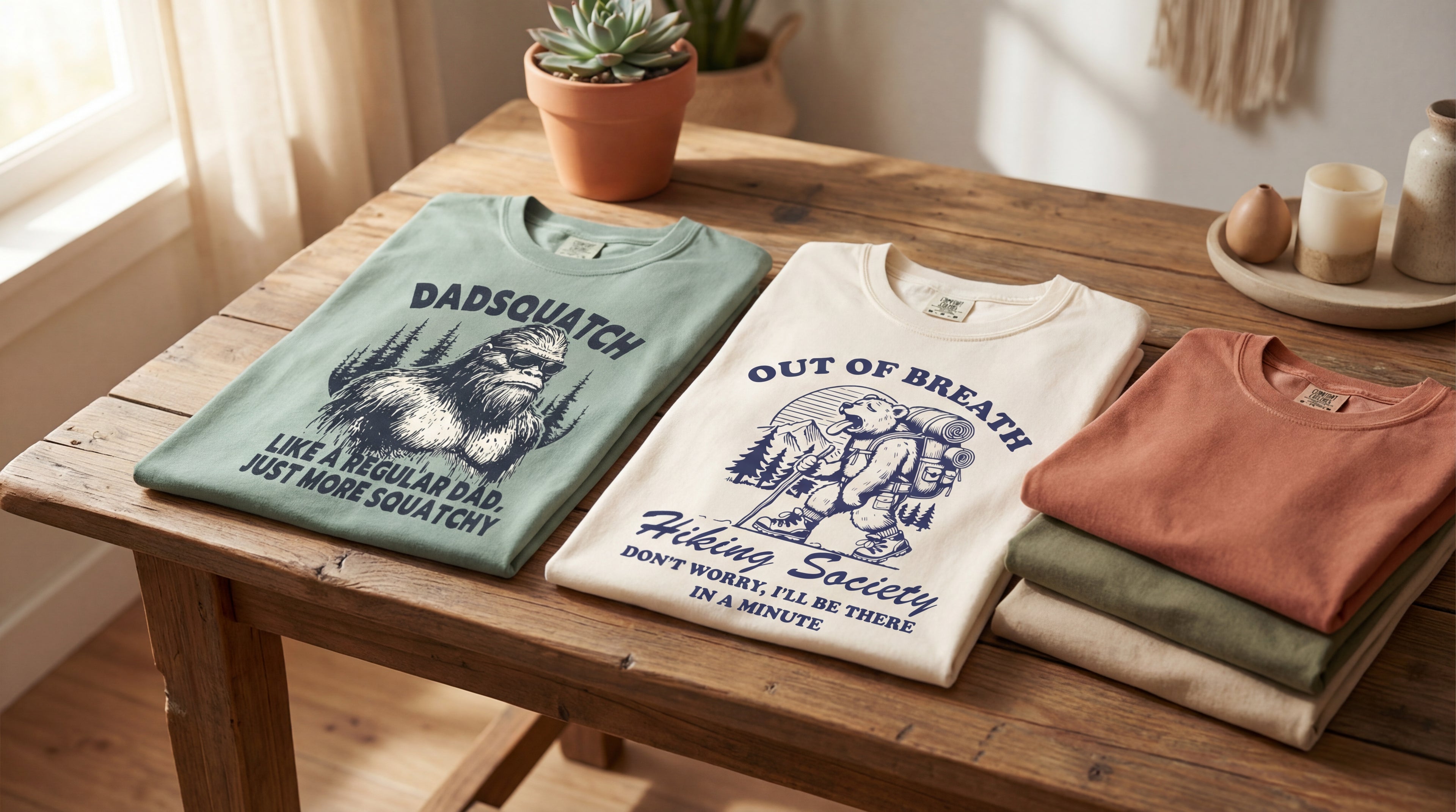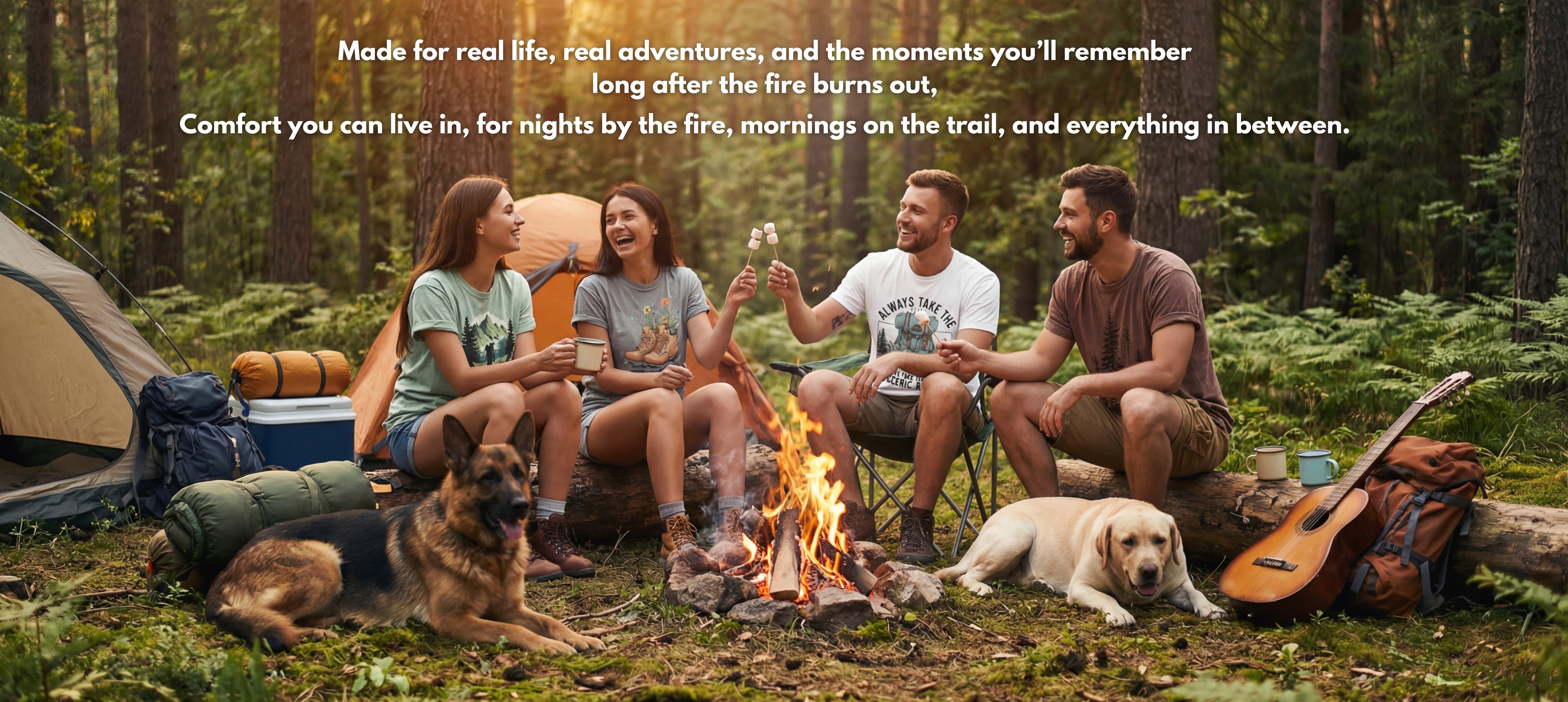 At Happy Camper Co., we believe the best outdoor stories are the ones that make you laugh. We're here for the burnt marshmallows, the wrong turns that became the right memories, and the tent stakes you definitely forgot at home. Our designs celebrate the beautifully imperfect reality of outdoor life - where presence beats perfection every single time. Whether it's a self-deprecating hiking joke, a vintage-inspired trail design, or a reminder that getting lost is half the fun, each piece is made to honor your authentic adventures. We focus on quality fabrics that actually hold up on the trail, earth-tone aesthetics that feel lived-in from day one, and humor that says "yeah, I've been there too." Because the outdoor life isn't reserved for Instagram-perfect mountaineers - it's for anyone who loves being outside, even when (especially when) things don't go according to plan. So go ahead - wear your mishaps proudly, embrace the detours, and remember that the scenic route is usually the one you didn't mean to take.
